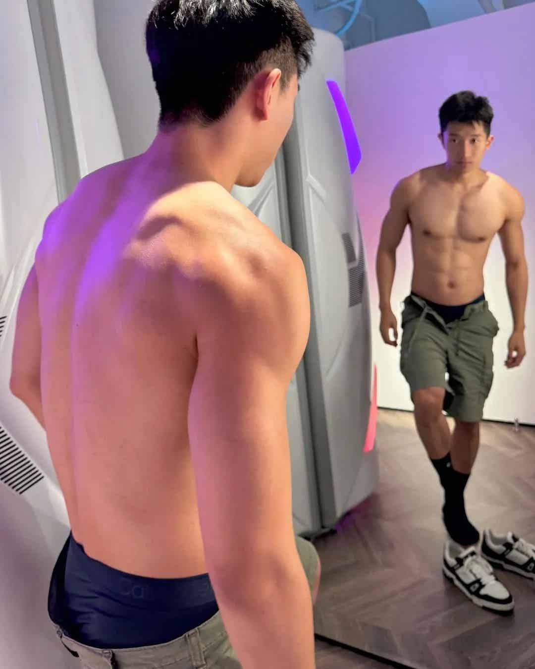 把镜头拉近后,这胸肌腹肌真的是太性感了,我也是非常羡慕的,毕竟生活在成都的小武那些火锅串串一直是我健身道路上无法抵挡的绊脚石呀,所以现在的我只要求我身材匀称就好!哈哈哈,是不是感觉我非常放纵自己了,因为好吃的真的是太多了!