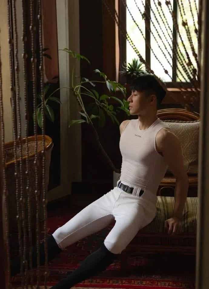 小哥哥的白色背心搭配紧身白裤子,将时尚与身材完美地展现了出来。这种穿搭不仅彰显了他的身材气质,更凸显了他自身的阳刚之气。
