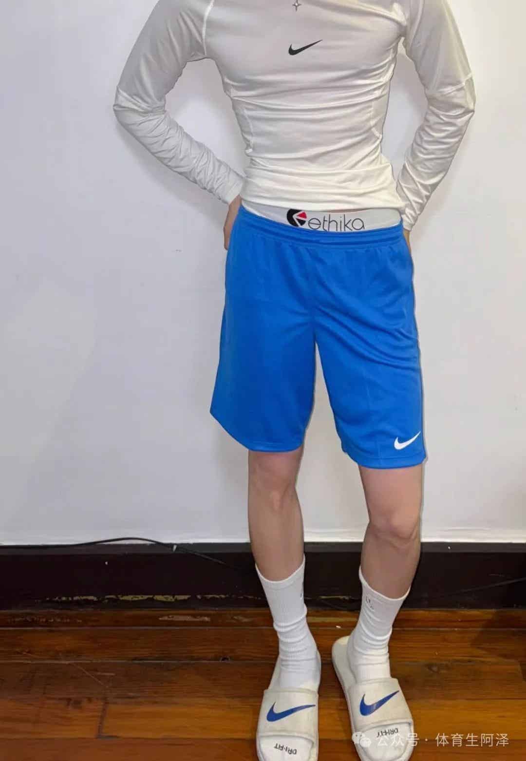 就这个穿搭你说迷人不迷人,白色的内衬加上高弹白袜,散发出体育生的独特魅力。而且虽然经常打篮球但是还是白皮,这个程度谁懂啊!自从看惯了黑皮体育生,回过头来看看白皮体育生这才是真香啊!黑皮体育生你感觉都下不去口,而白皮体育生闻起来就是香香的哈哈哈。所以说大多数人的审美还是白皮多一点。而且这个腿真的太迷人了,感觉就这个腿长都有 1 米三了吧!太羡慕了,整个上半身的身材满满的薄肌身材啊!这个胸肌你说没健身过阿泽是认可的,但是你说这个胸肌没有肌肉,阿泽是绝对不认可的。这个肌肉才是体育生的标杆啊!不是吃蛋白粉练的,这个是纯肌肉。