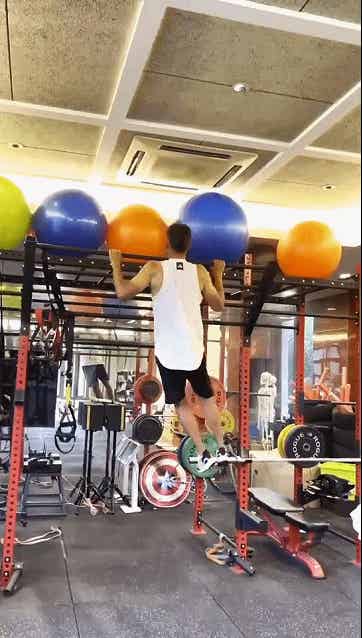 宁泽涛平时还喜欢在朋友圈跟粉丝们炫健身新技能比如下面这组高难度杠上动作,就非常考验臂力和体能引体空中漫步!