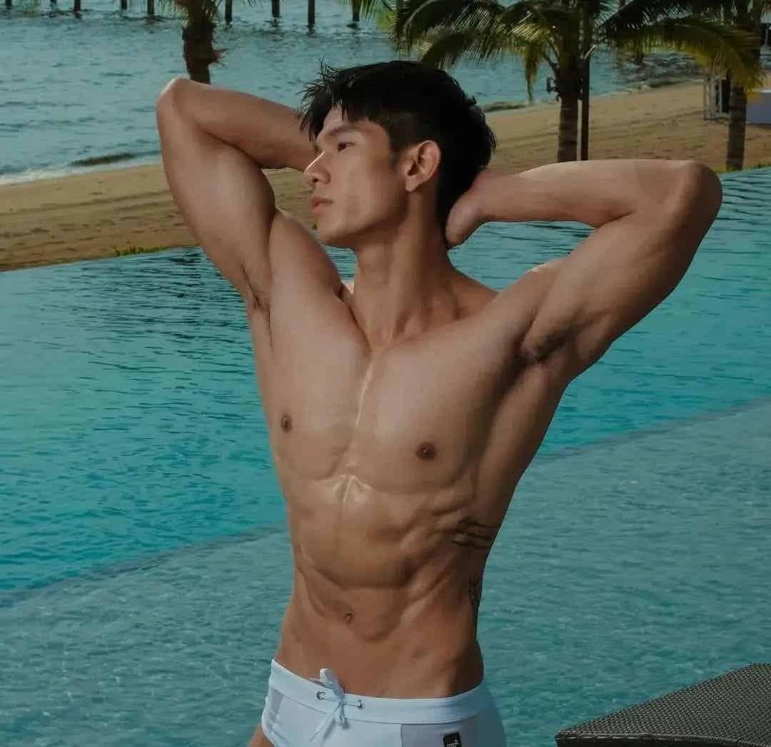 特别是他的腹肌,那线条清晰得像是被雕刻出来的艺术品。运动后更不得了,下腹青筋暴起,肌肉线条饱满紧致,仿佛随时要从照片里蹦出来。粉丝们戏称他为“泰国最能扛事的男友背”,宽厚的肩膀和力量感十足的手臂,完全是安全感爆棚的代名词!