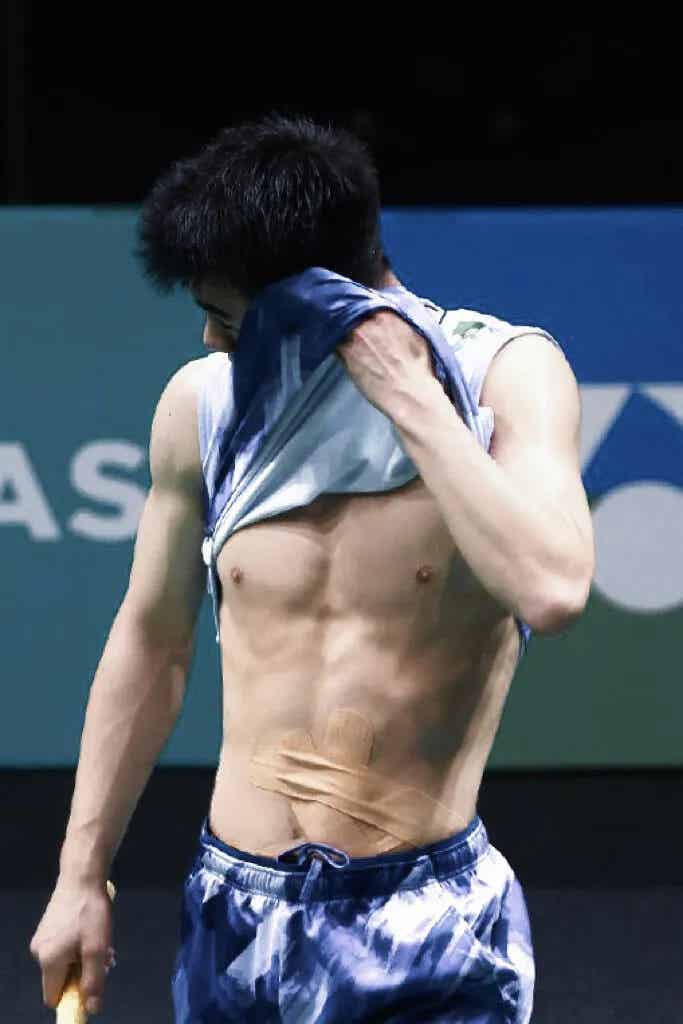 羽毛球选手腿部肌肉都很强大,他的尤为明显,在比赛中,可以清晰地看到他的肌肉线条。