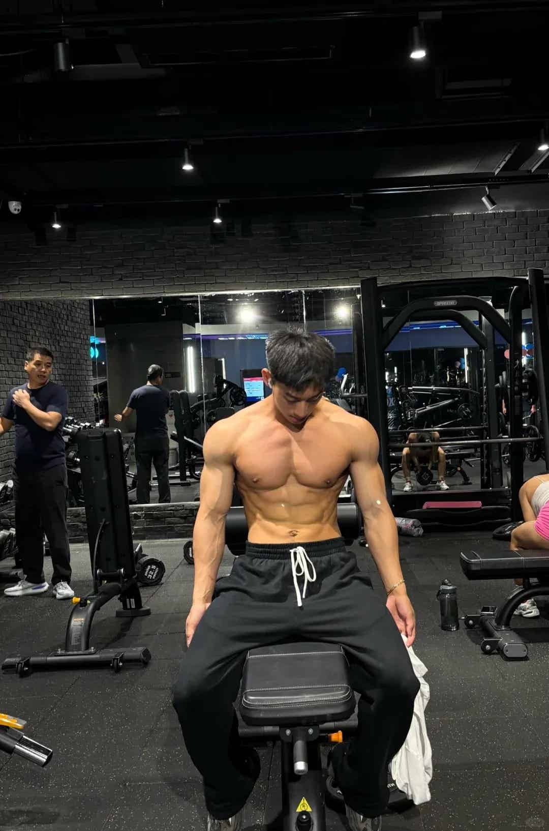 接下来是大家喜闻乐见的看看小哥哥身材的时间了。看他的身材照片,小哥哥肩宽、腰细,他的肌肉维度相当不错,体脂也很低,而且胸肌厚实、腹肌明显。