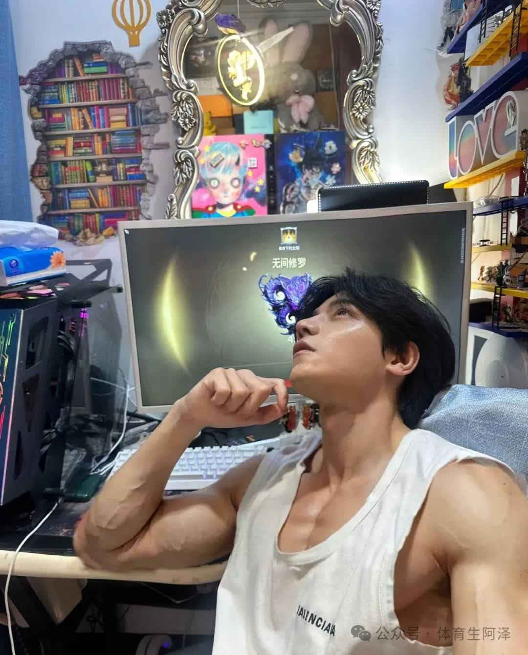 他是山东体院篮球队的明星,身材是天生为运动而生的那种,每一寸肌肉都是力量与美感的结合。低体脂、高肌肉,八块腹肌棱角分明,窄腰宽肩的倒三角身材让人挪不开眼。