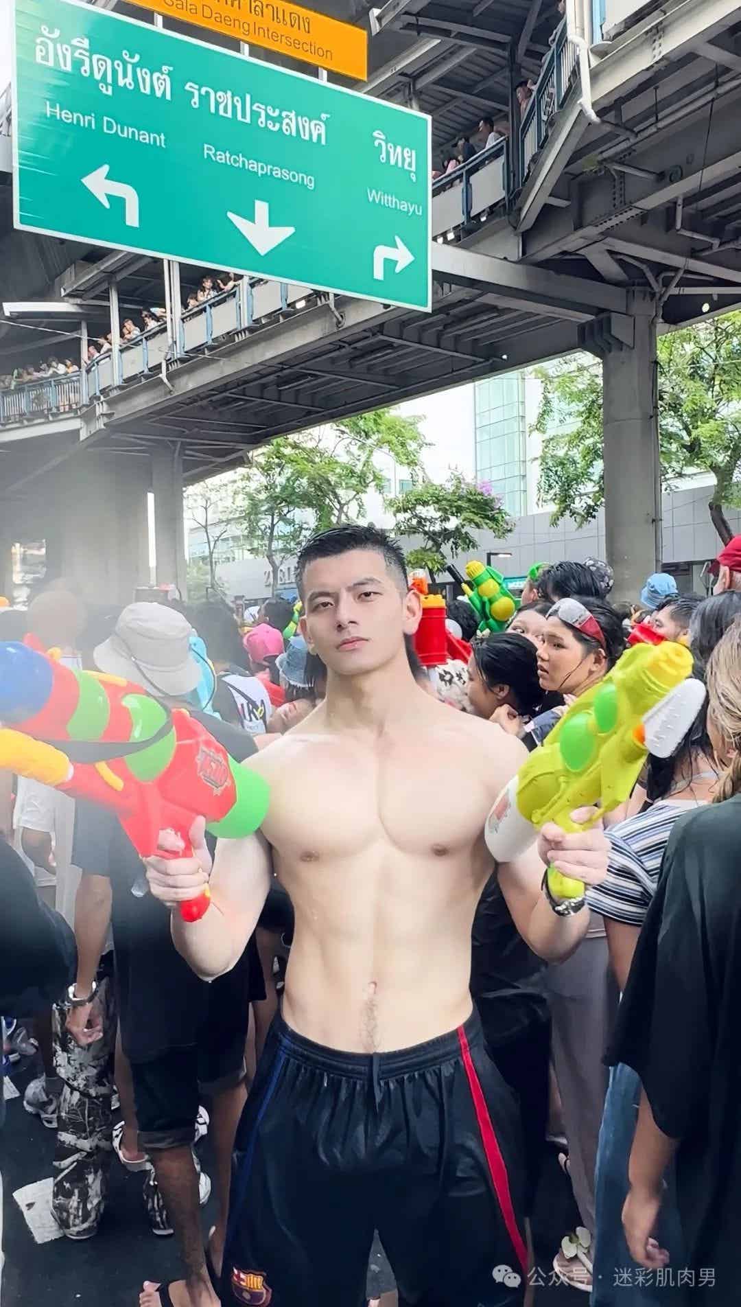 2025 泰国泼水节(宋干节)在清迈塔佩门与护城河区域,这场传统节日已演变为全球游客追逐的狂欢盛宴:浑浊的河水与定制水枪交织成水幕战场,双条车在湿滑路面穿行时遭遇的 " 水弹突袭 ",构成了最具泰国特色的街头行为艺术。正是这种传统与现代的碰撞,为 @白斩哥哥的走红提供了天然舞台。