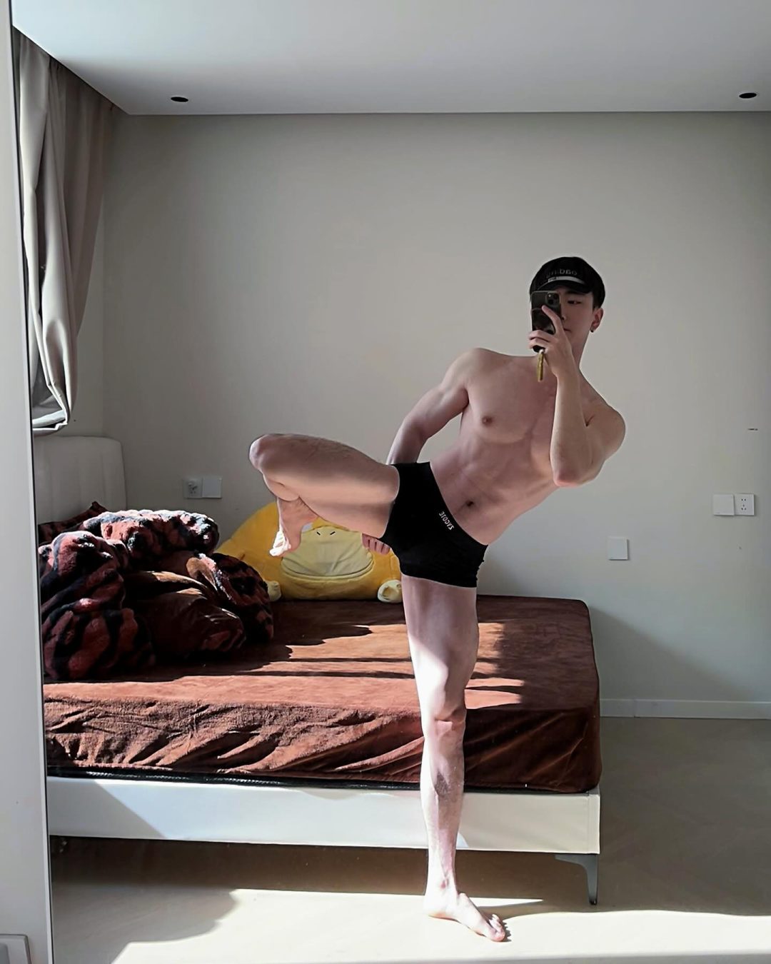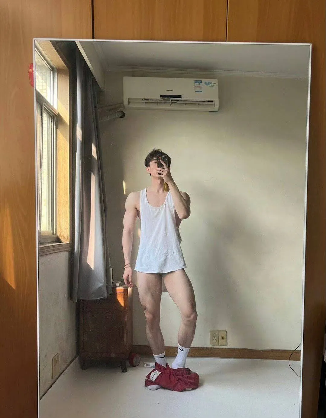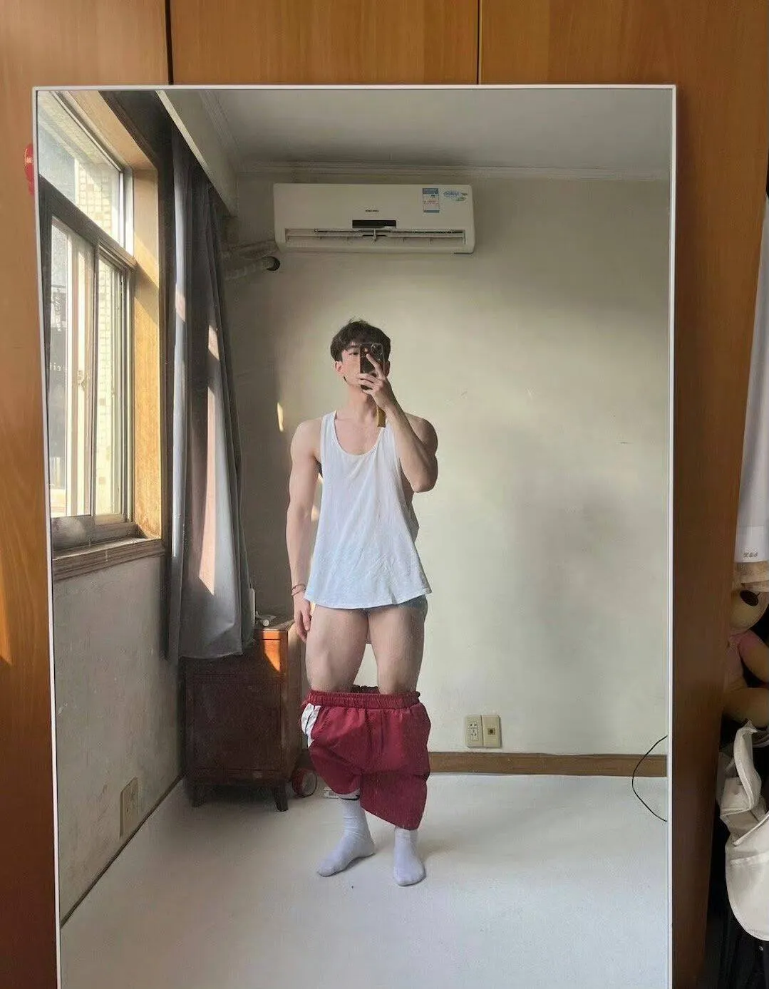 一双修长有型的大长腿,就已经让人移不开眼、心猿意马不已了。再看小哥那结实圆润、均匀饱满的白腹肌, 就是力与美的完美结合!