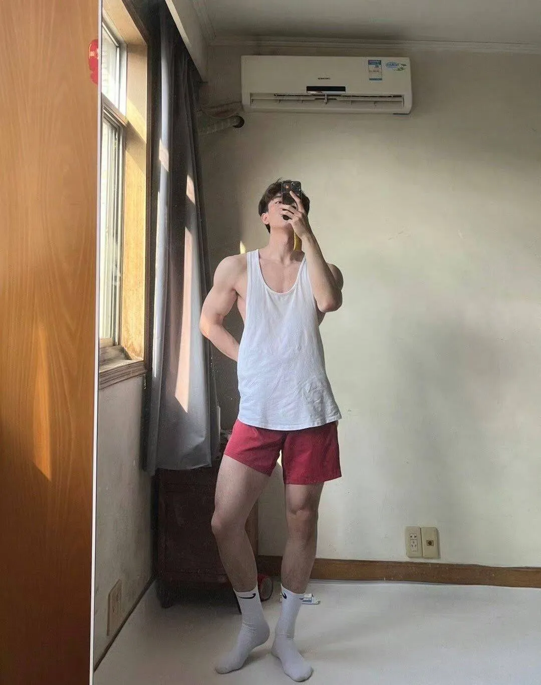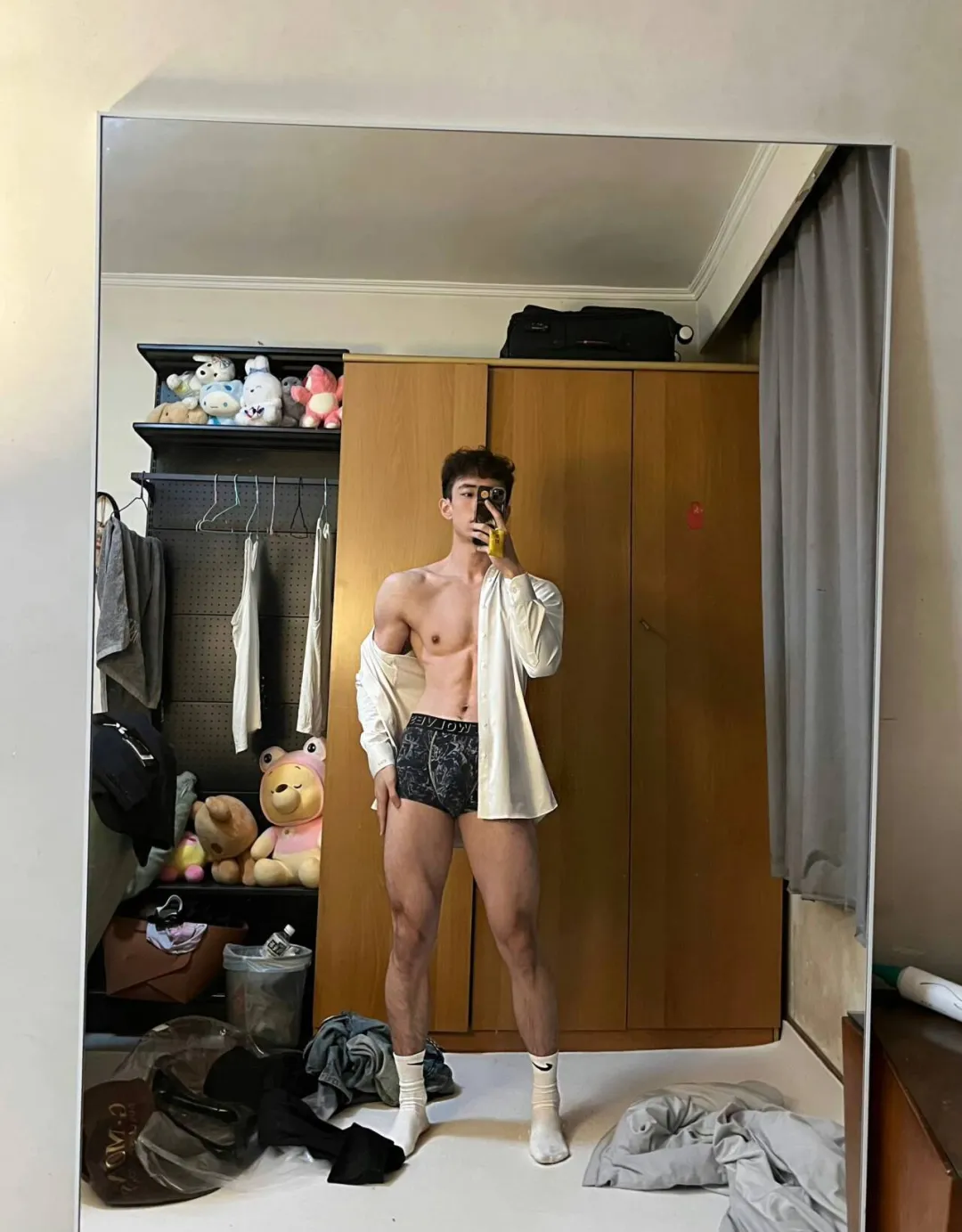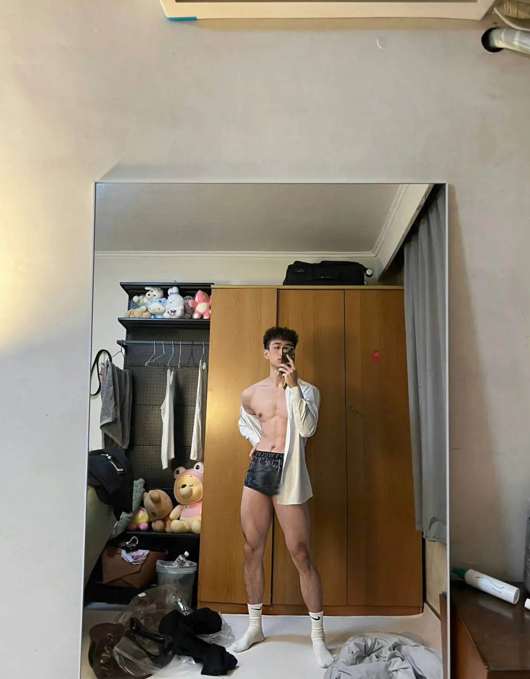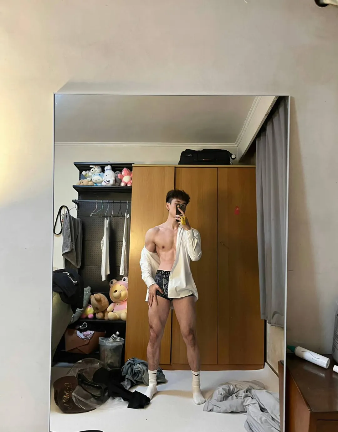 一双修长有型的大长腿,就已经让人移不开眼、心猿意马不已了。再看小哥那结实圆润、均匀饱满的白腹肌, 就是力与美的完美结合!