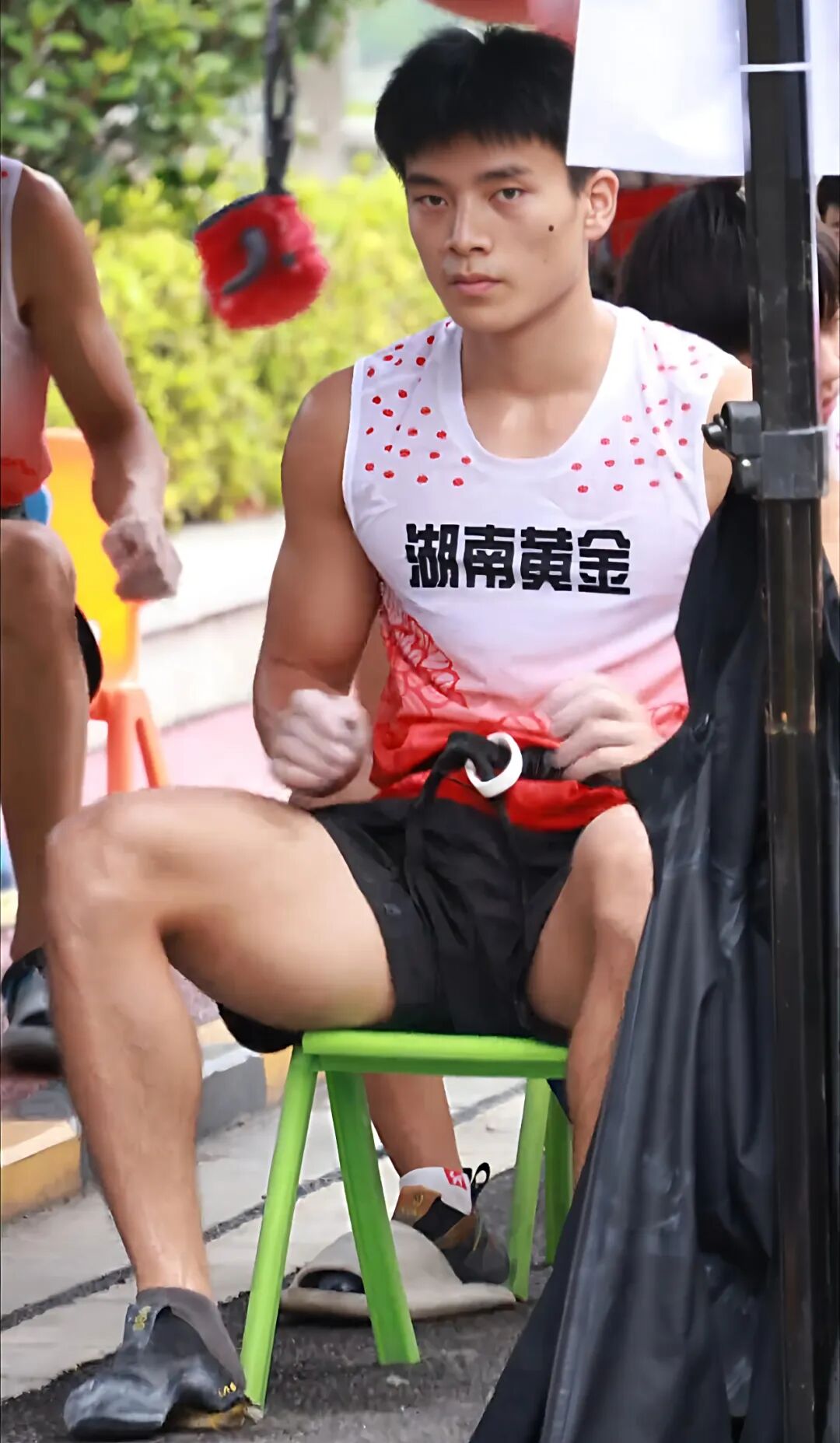 当终场哨响,伍鹏坐在休息区的瞬间被无数镜头定格:黑色速干短裤下的腿部肌肉线条如精密切割的大理石,随意散落的运动护具在脖颈处勾勒出充满张力的倒三角。这个曾因中考失利与普通高中擦肩的少年,用岩壁上的每一个触点重新定义了人生轨迹。他的成长轨迹恰如攀岩运动的中国式崛起:在垂直的赛道上不断刷新极限,让世界见证东方力量的全新可能。