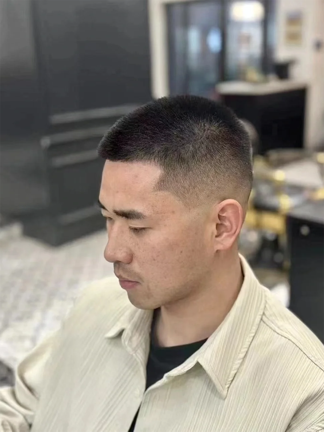寸头发型对于男生来说,是一款非常百搭的造型,不管你是什么脸型或者多少岁都可以剪。整体头发沿着头型剪短,几乎保持相同的长度,呈现出一种整齐、干净的效果;两边则几乎铲光,并和顶部有明显的层次感,整体看起来干净利落,痞帅十足!而且还没有复杂的打理技巧,很值得大家去剪!