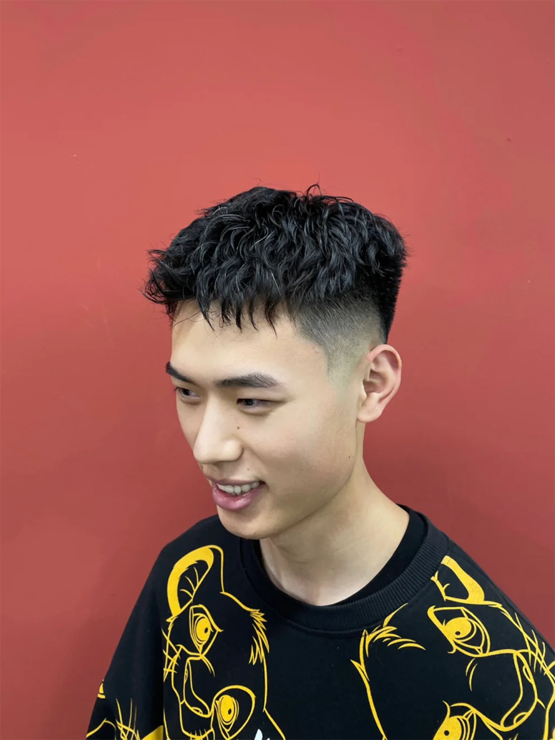 对于喜欢个性短发的男生,除了日常打理,也可以通过烫发来寻求突破,让自己的造型更加有设计感。比如像上面这款两边铲短烫发,把顶区的头发烫出些卷曲的效果,让头发变得更加蓬松,两边的头发也顺势全部剃短,整体造型既清爽又有层次感,既时尚又帅气,非常适合年轻的小哥哥们去剪!