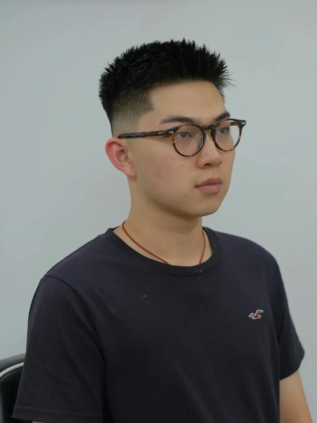 这款发型很适合懒懒的男生,不需要打理,起床就能轻松帅气出门。两边头发铲青,顶区头发则沿着头型剪短,侧面看上去有一种渐变效果,整体清爽自然,非常阳光帅气。