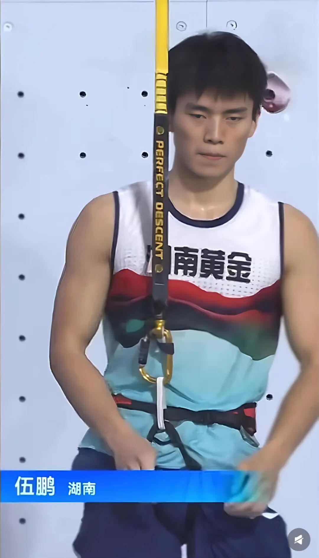 这种颠覆常规的竞技风格恰好诠释了新时代运动员的独特魅力。社交媒体上关于 "岩壁蜘蛛侠" 的话题开始刷屏,有网友惊叹:"原来速度攀岩可以如此兼具暴力美学与艺术观赏性"。当伍鹏赛后主动与印尼选手交换攀岩绳扣时,他粲然一笑间展露的小虎牙,又瞬间消解了赛场的硝烟,让这场友谊赛回归体育精神的本质。