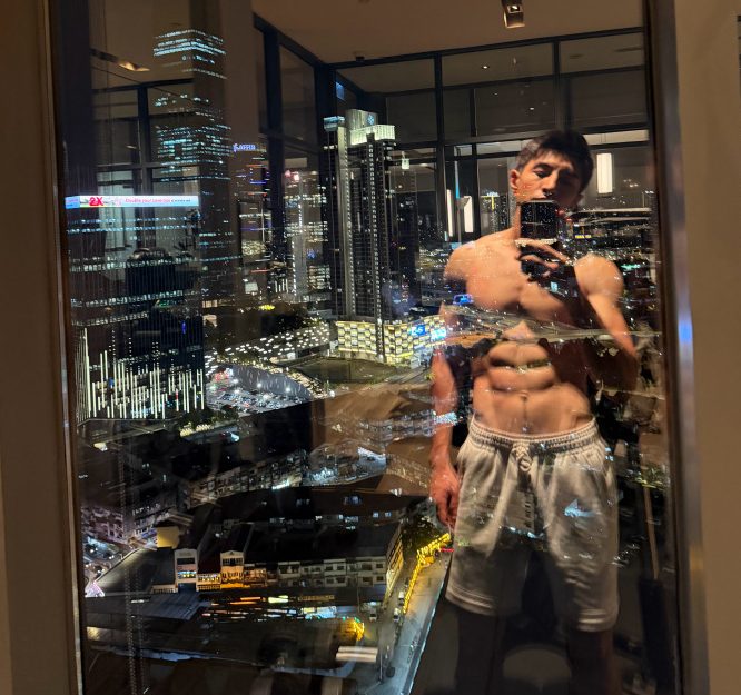从其公开分享的动态不难看出,金瀚在吉隆坡的夜晚还在锻炼,并且还大方的晒健身照,一口气发了四张。